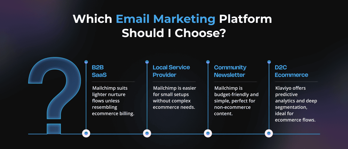 Both Klaviyo and Mailchimp are powerful. But the best choice depends on your business model, goals, and growth stage.