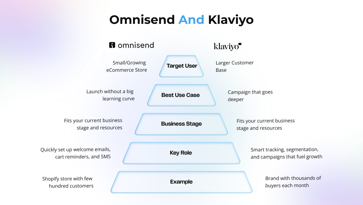 Deciding between Omnisend and Klaviyo really comes down to where your business is right now and where you want it to go.