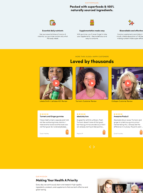 We delivered this clean and minimal design powered by Shopify PLUS for a famous Health and Wellness brand based in the US, offering gummy supplements with a bundle and subscription model, emphasizing natural ingredients and health benefits.