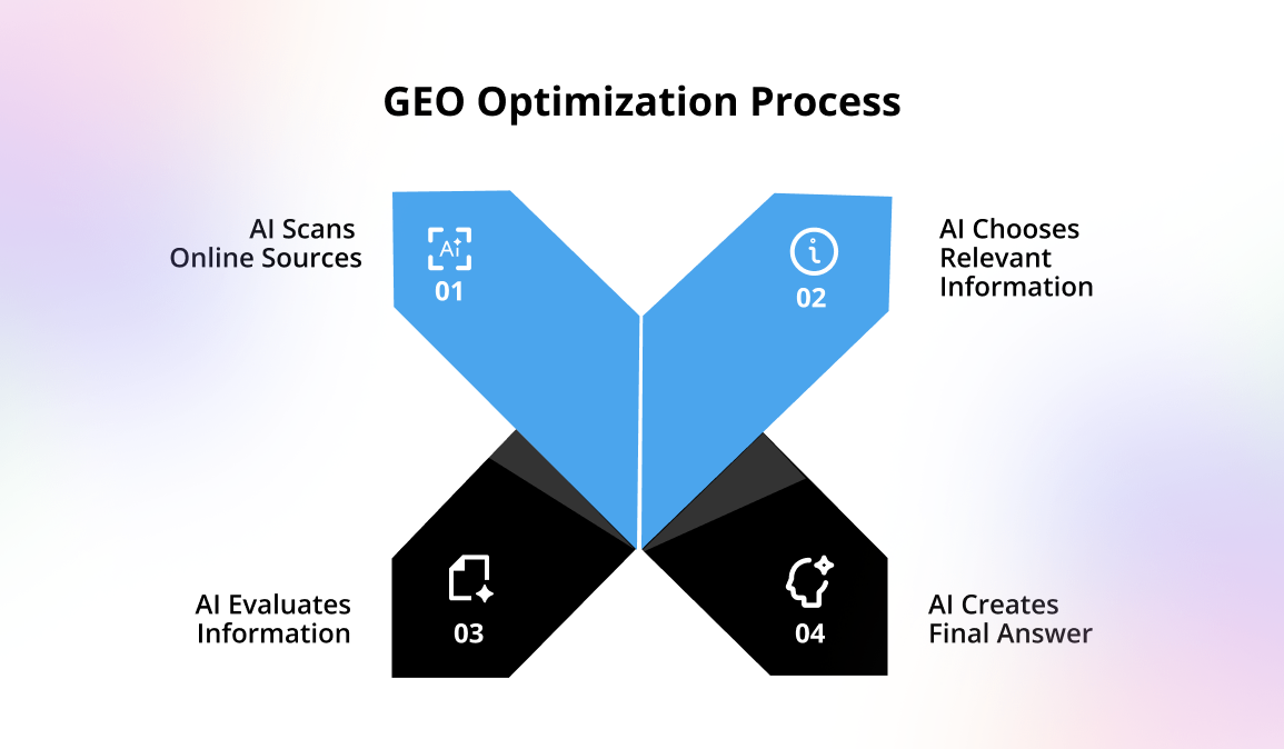 AI models like Gemini, OpenAI models, Bing AI, and other generative engines scan thousands of pages at once. They pick the clearest, most structured information and turn it into one simple answer for the user. GEO helps you present your content in a way these systems can understand instantly, increasing your chances of being featured in their generated responses.
